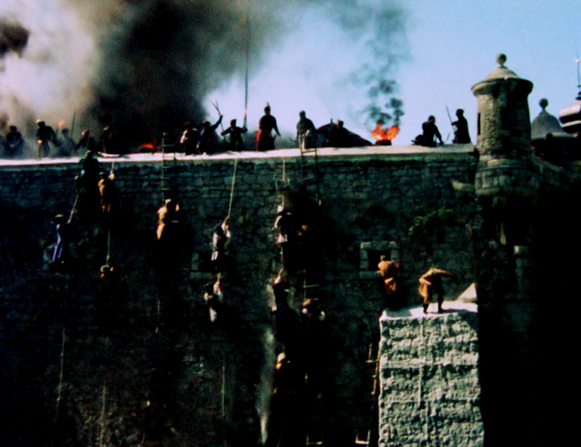 Fortyfikacje bastionowe Pieskowej Skały to gotowa scenografia do kręcenia scen bitewnych. Szczególnie efektownie wypadły w serialu „Rycerze i rabusie”. Przez umiejscowioną w tym miejscu bramę dostają się na zamek, bądź z niego wyjeżdżają bohaterowie wielu filmów (np. „Janosik”, „Podróż za jeden uśmiech”, „Stawka większa niż życie”, „Pierścień i róża”, „Nie kłam kochanie”)