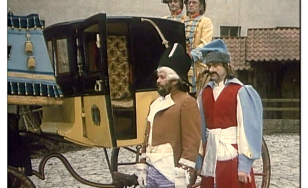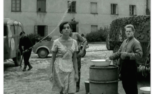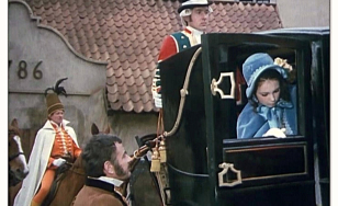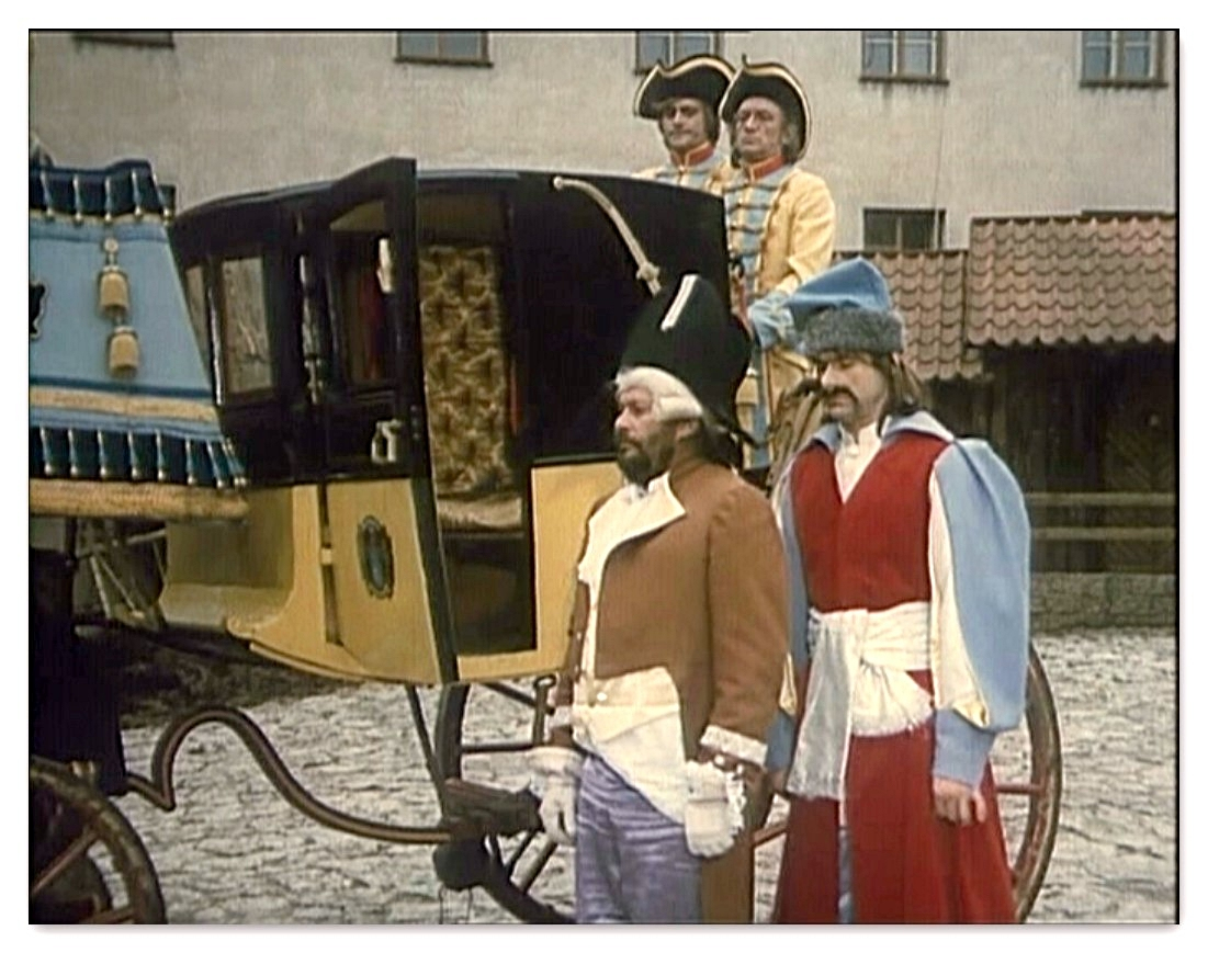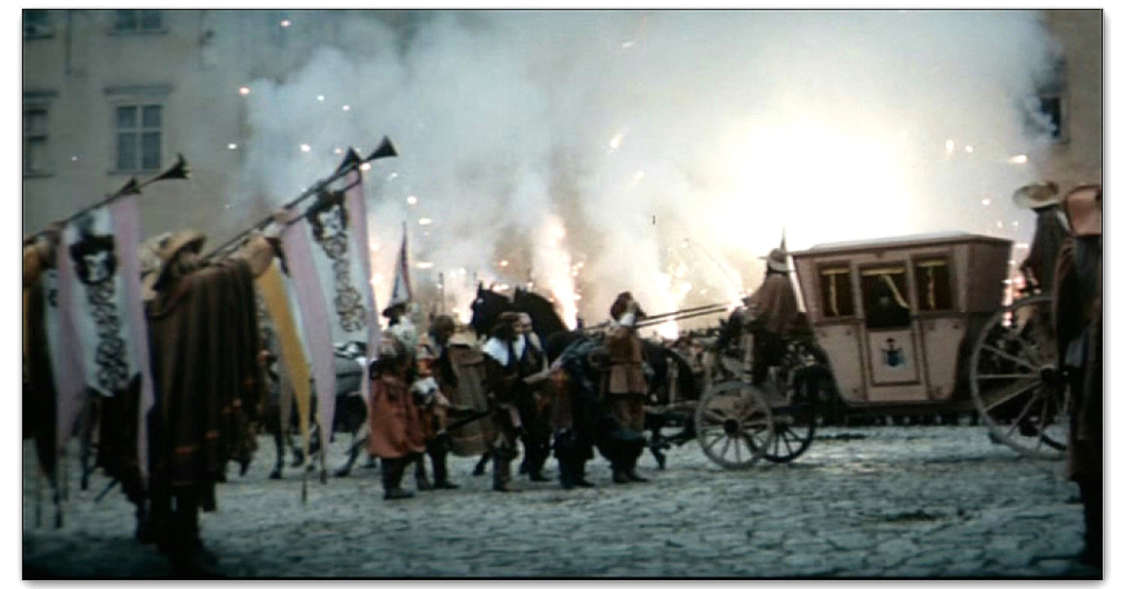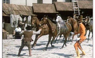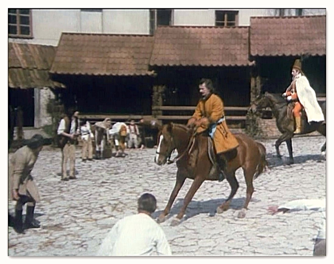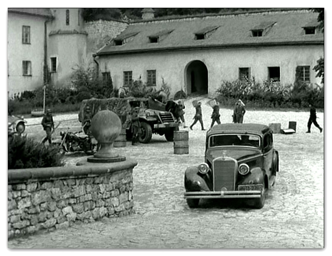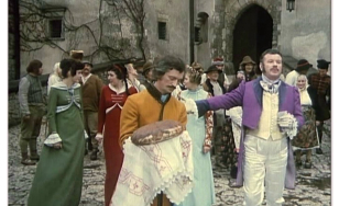 Rozległa przestrzeń zewnętrznego dziedzińca Pieskowej Skały dawała możliwość nagrania tu efektownych scen zbiorowych. Dzięki temu ta część zamku znakomicie zaprezentowała się w „Potopie”, czy „Janosiku”. Z tych samych powodów kręcono tu wymagające dystansu sceny dynamiczne, które możemy podziwiać oglądając „Stawkę większą niż życie”, „Pierścień i różę” i „Podróż za jeden uśmiech”. Nie zawsze wstrzymywano do zdjęć ruch zwiedzających i np. w filmie „Reich” możemy zobaczyć turystów przybyłych owego dnia do Pieskowej Skały.