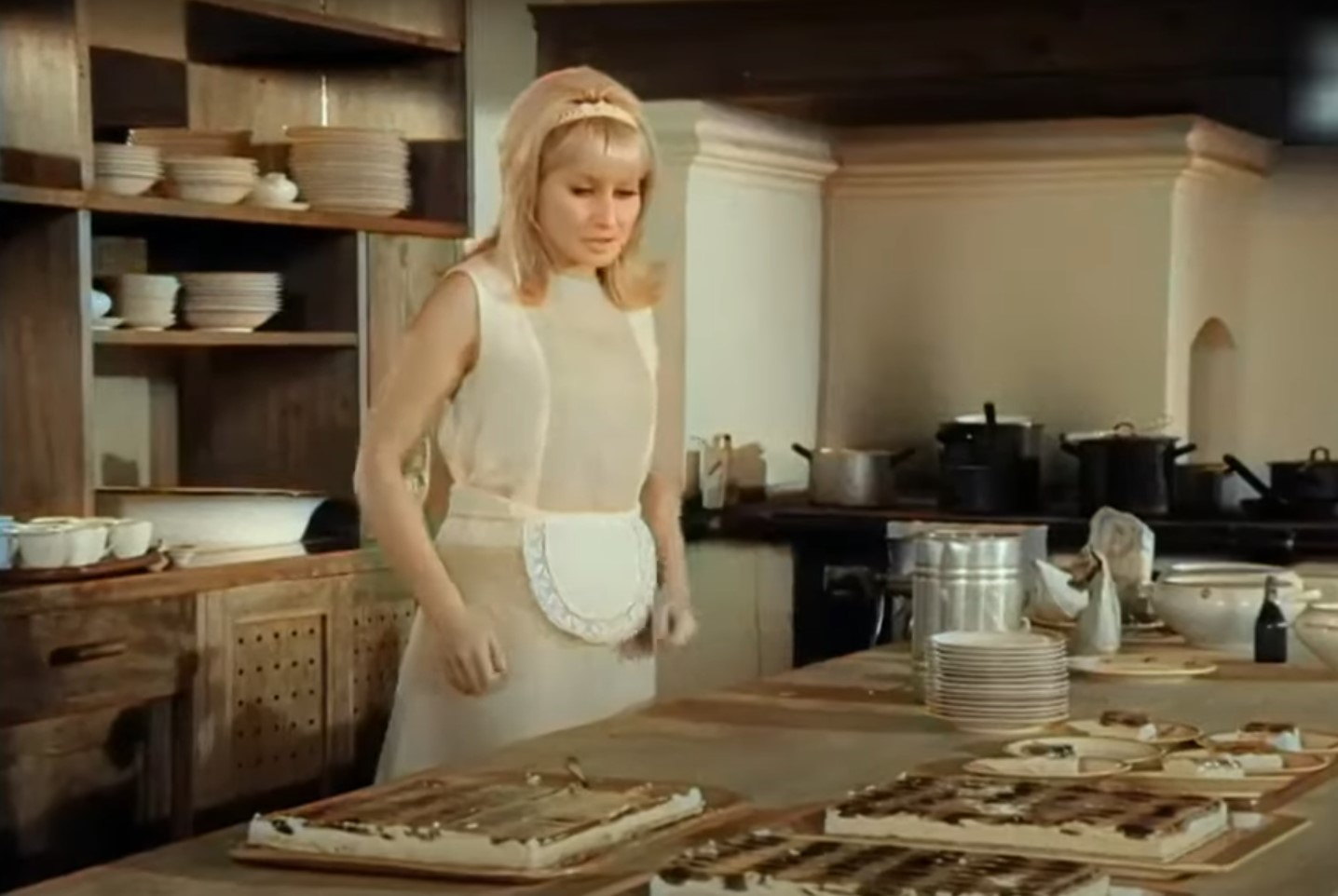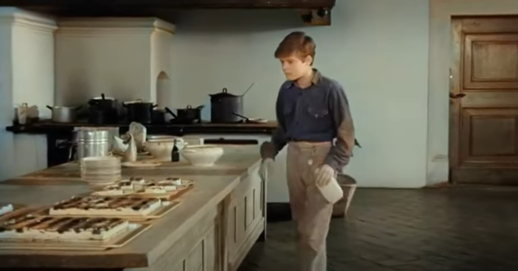 To w tym pomieszczeniu twórcy „Podróży za jeden uśmiech” znaleźli odpowiednie wnętrze do nakręcenia sceny, w której Poldek, bohater filmu, wpada do kuchni zamkowego pensjonatu i ukradkiem częstuje się ciastem. Widoczny piec kuchenny stanowił autentyczne wyposażenie ówczesnej pieskoskalskiej kawiarni.